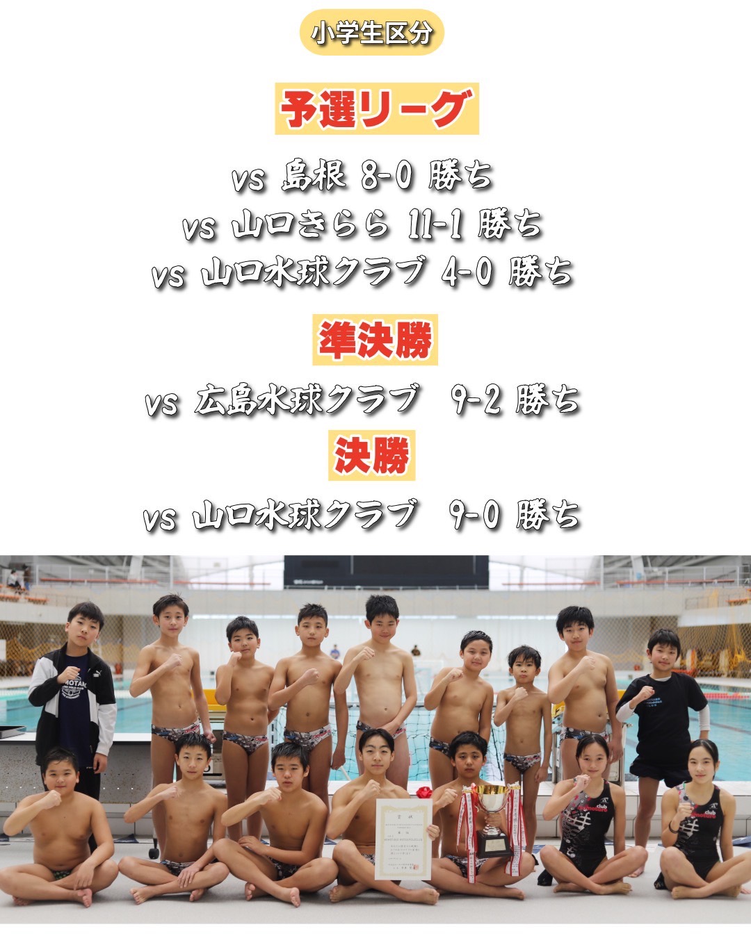 1月31日・2月1日に山口きらら博記念公園水泳プールで開催された水球第48回JOC中国予選で見事、小学生チームが優勝🏆しました‼️